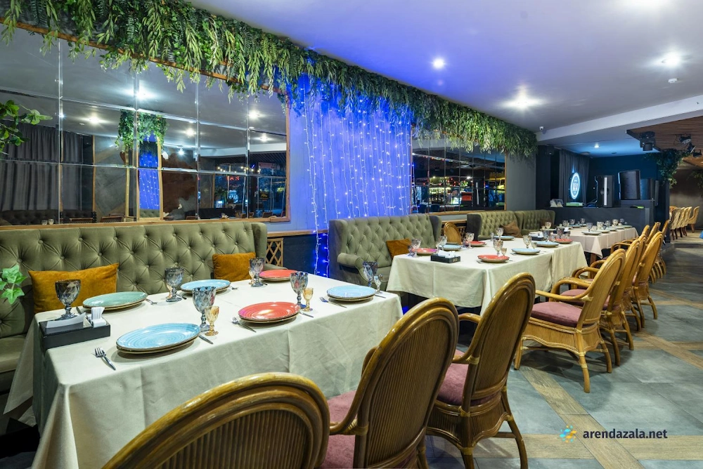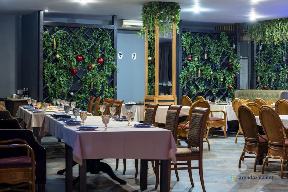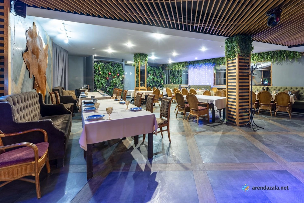 В зале ресторана царит уютная атмосфера, создаваемая продуманным интерьером и вниманием персонала, который быстро реагирует на любые пожелания гостей. Посетители могут насладиться живой музыкой, разнообразным меню, включающим блюда на мангале, и потанцевать на танцполе средних размеров. Летом в зале поддерживается комфортная температура благодаря кондиционерам. Несмотря на некоторые недостатки, такие как низкие потолки и временами неудачный музыкальный репертуар, заведение предлагает лояльные условия для проведения банкетов и оставляет положительное впечатление у большинства гостей.
